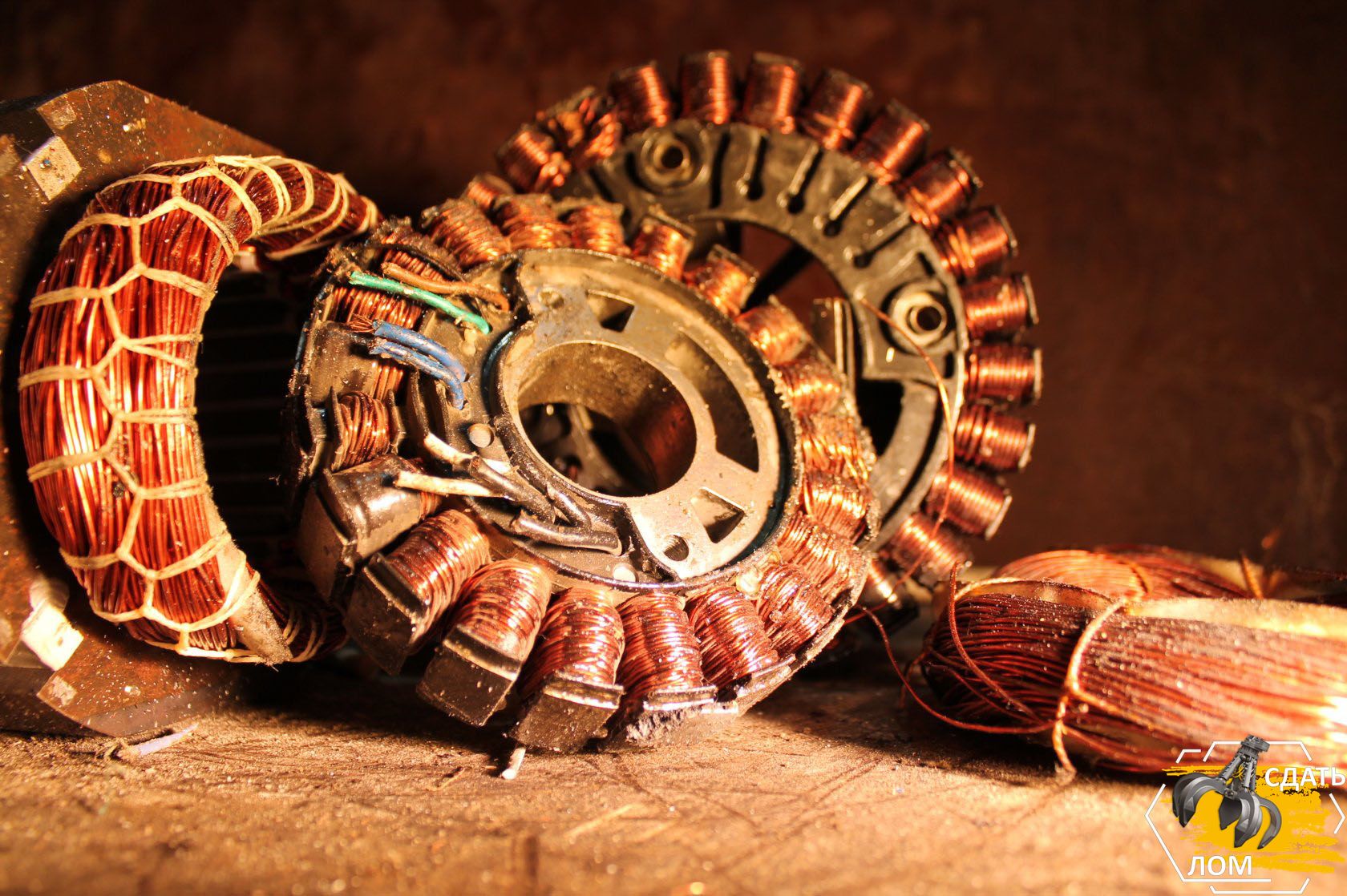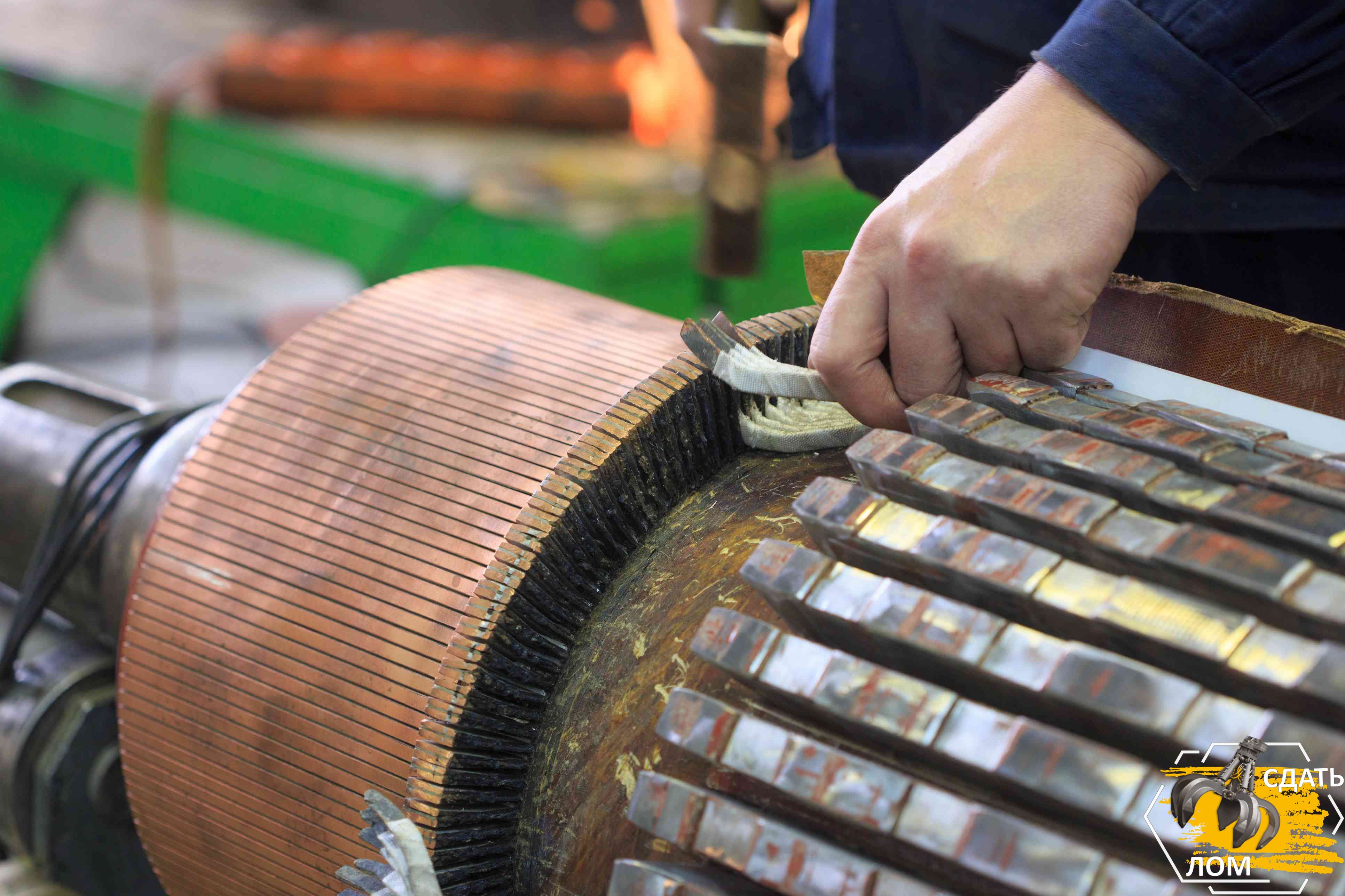 - Медь: Обмотки электродвигателей являются основным источником медного лома.